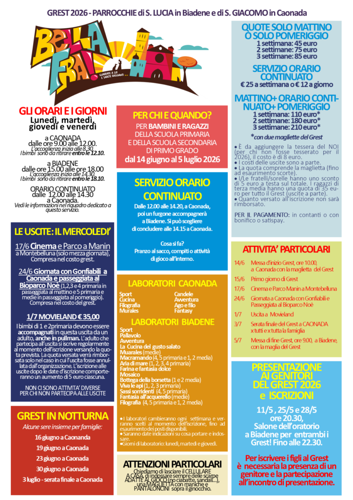 Home page Benvenuti nel nuovo sito della Parrocchia di Biadene, in cui troverete tutte le informazioni principali riguardanti la nostra comunità! Non dimenticate di seguirci sui nostri Profili Social! clicca quiper scaricare Camminare insieme e rimanere aggiornato sulle attività parrocchiali.